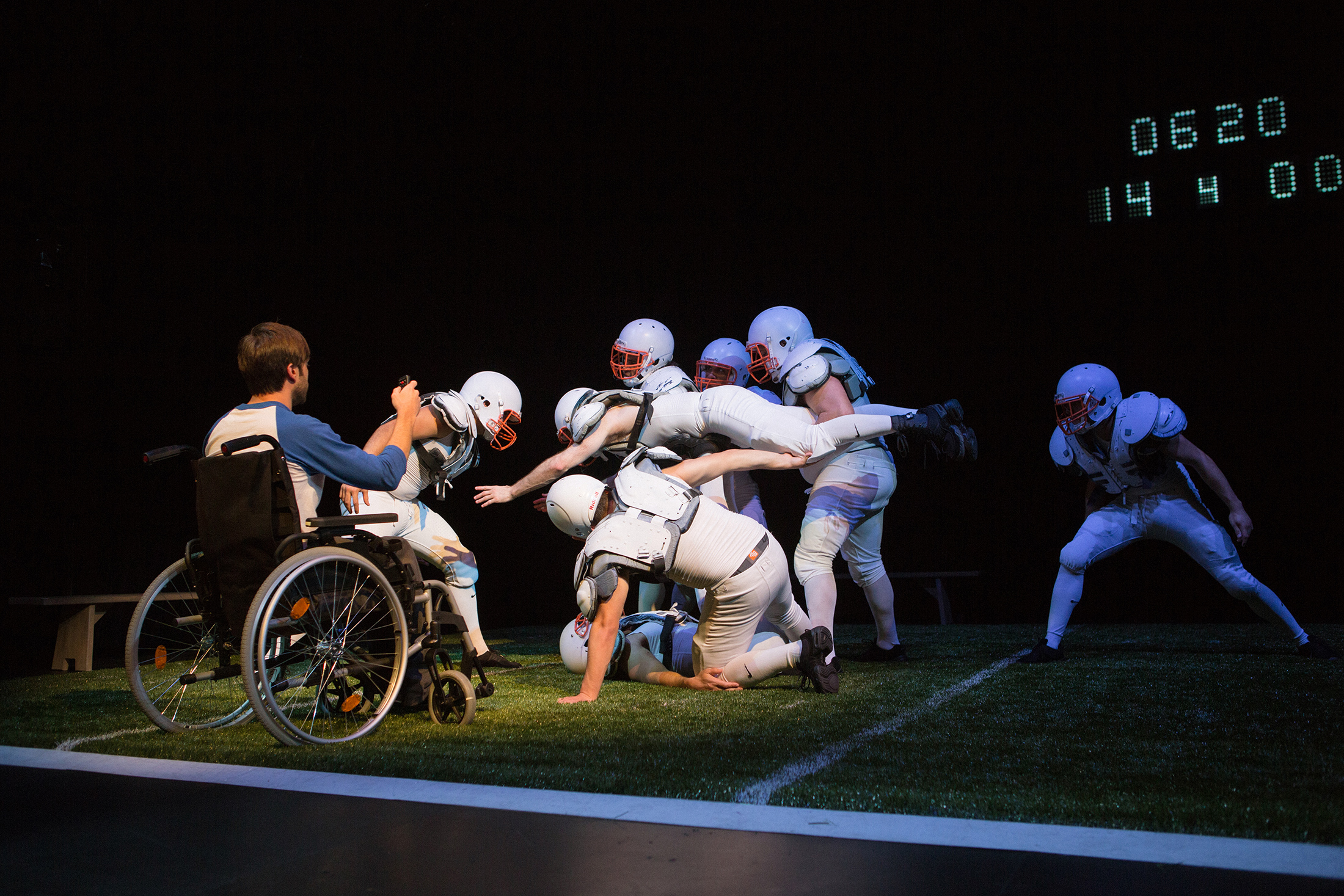 When football and dance collide, you get more than you bargained for. Start with four full quarters and a half-time show, complete with a dance company, a drum corps, and a fully-padded cast: what have you got? Grace and violence, victory and defeat. Is football a metaphor for life, or just the bread and circuses of our time? Colossal is an epic event that impossibly merges the worlds of football and dance, loss and recovery, and the toughest act of all: being yourself. Read the Press Release.