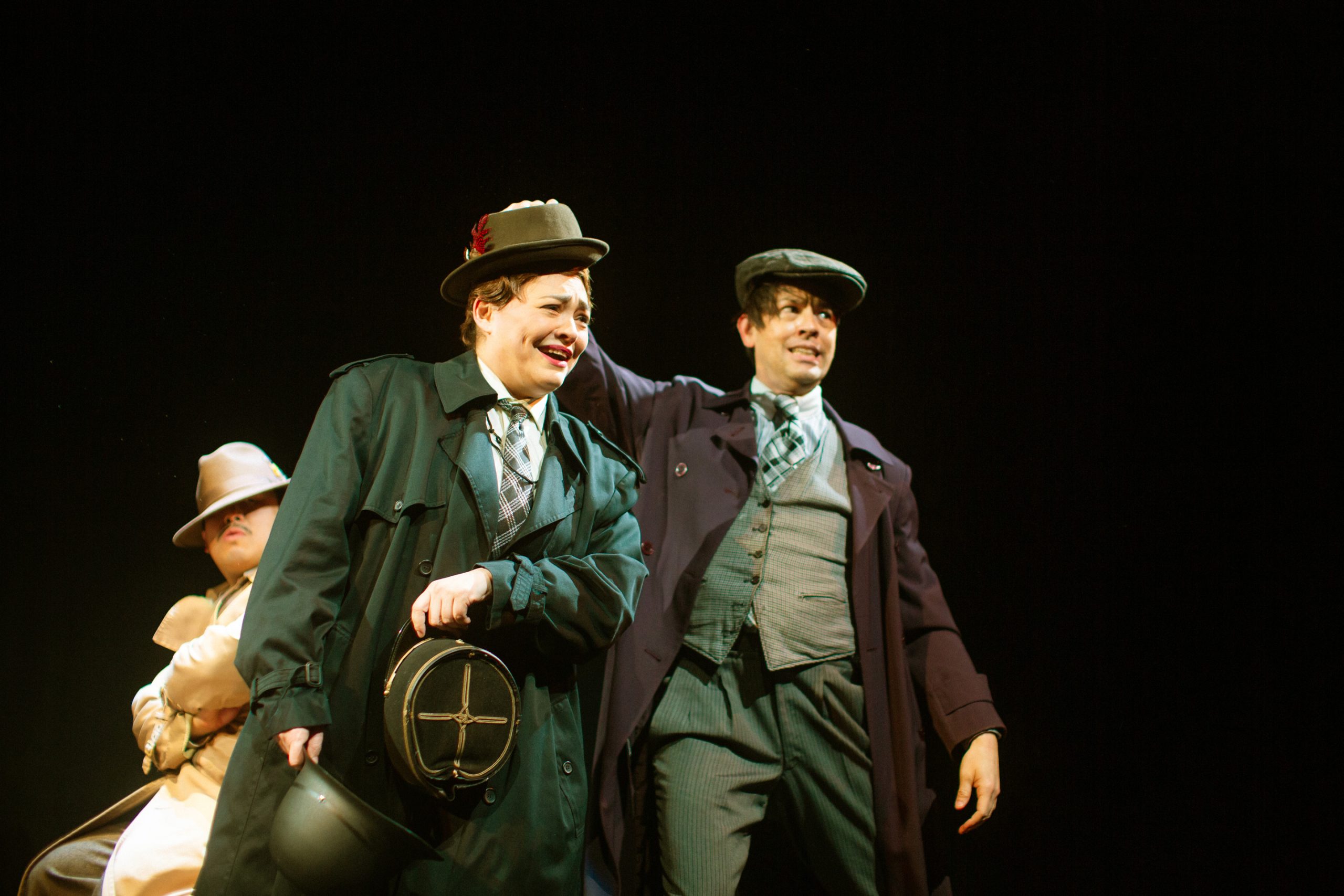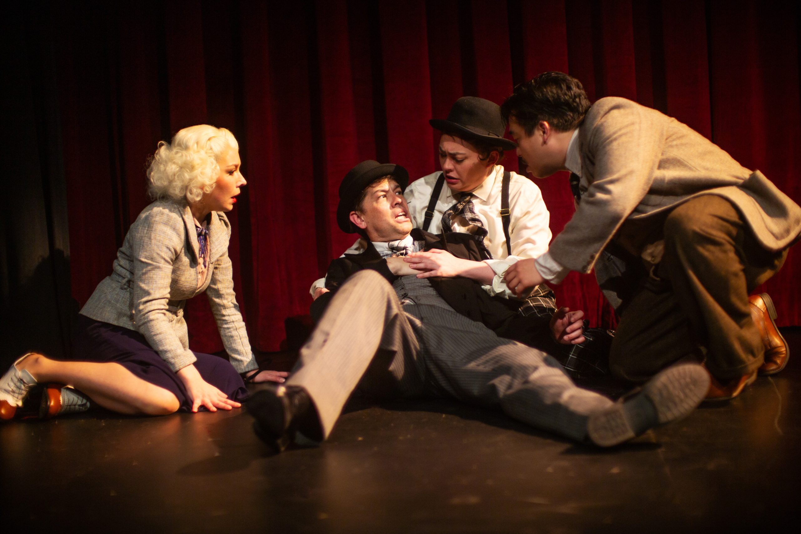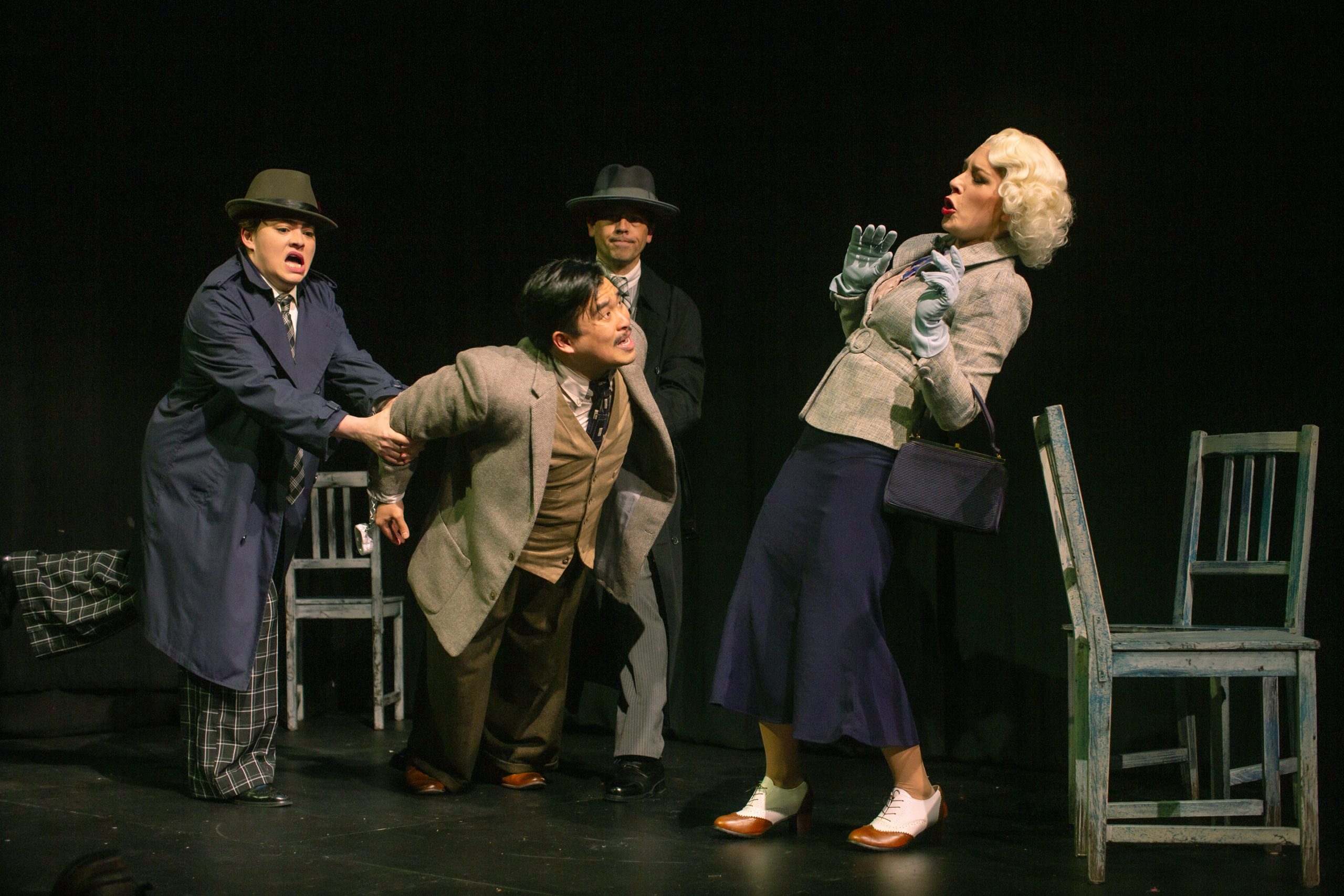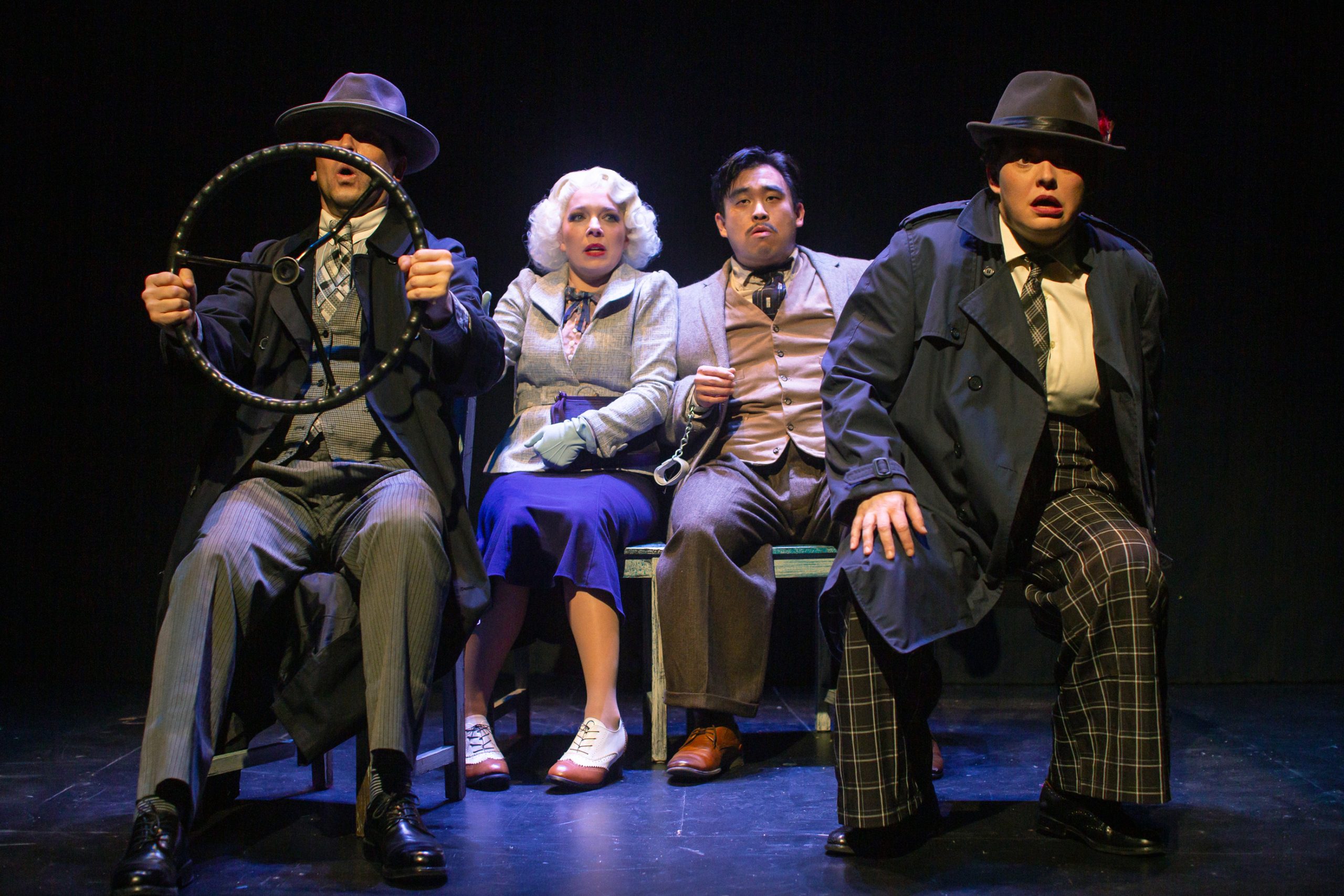 Following a mysterious murder, the rather dull Richard Hannay launches on a high-speed chase from a London music hall to Scotland’s highlands, where he must dodge devious spies, woo beautiful bombshells, and attempt to reveal secrets of The 39 Steps, an international spy ring. With inventive stagecraft and masterful performances, four nimble actors play more than 100 characters in this riotous spoof that is equal parts slapstick comedy and film noir thriller.