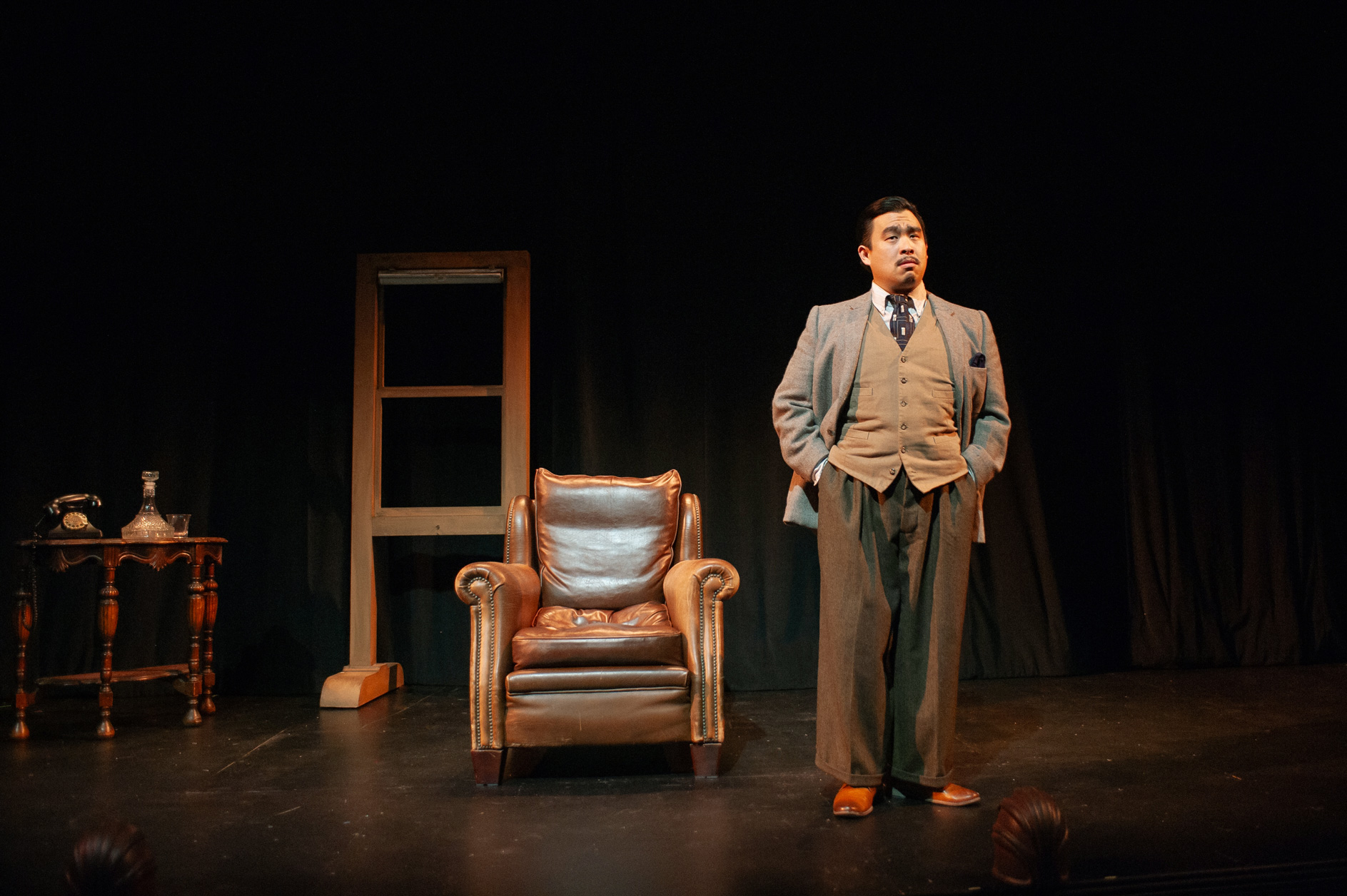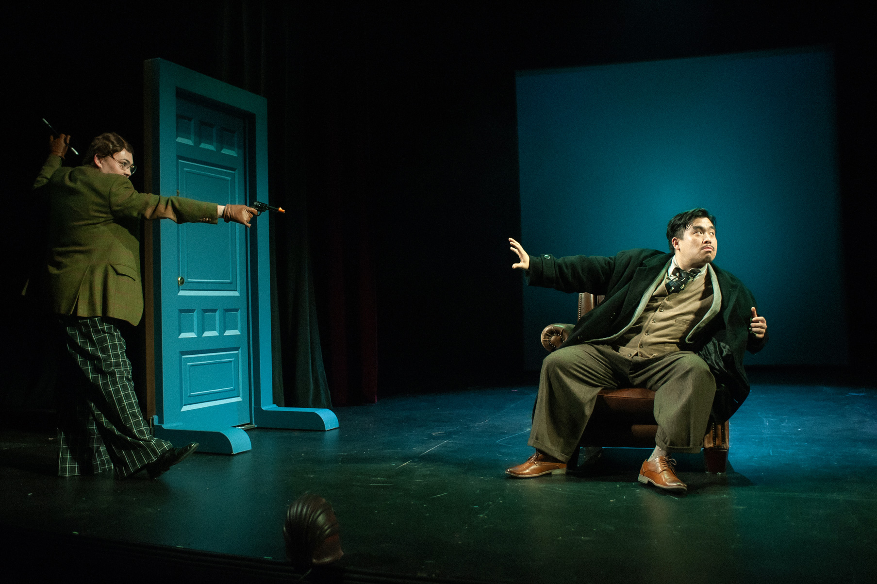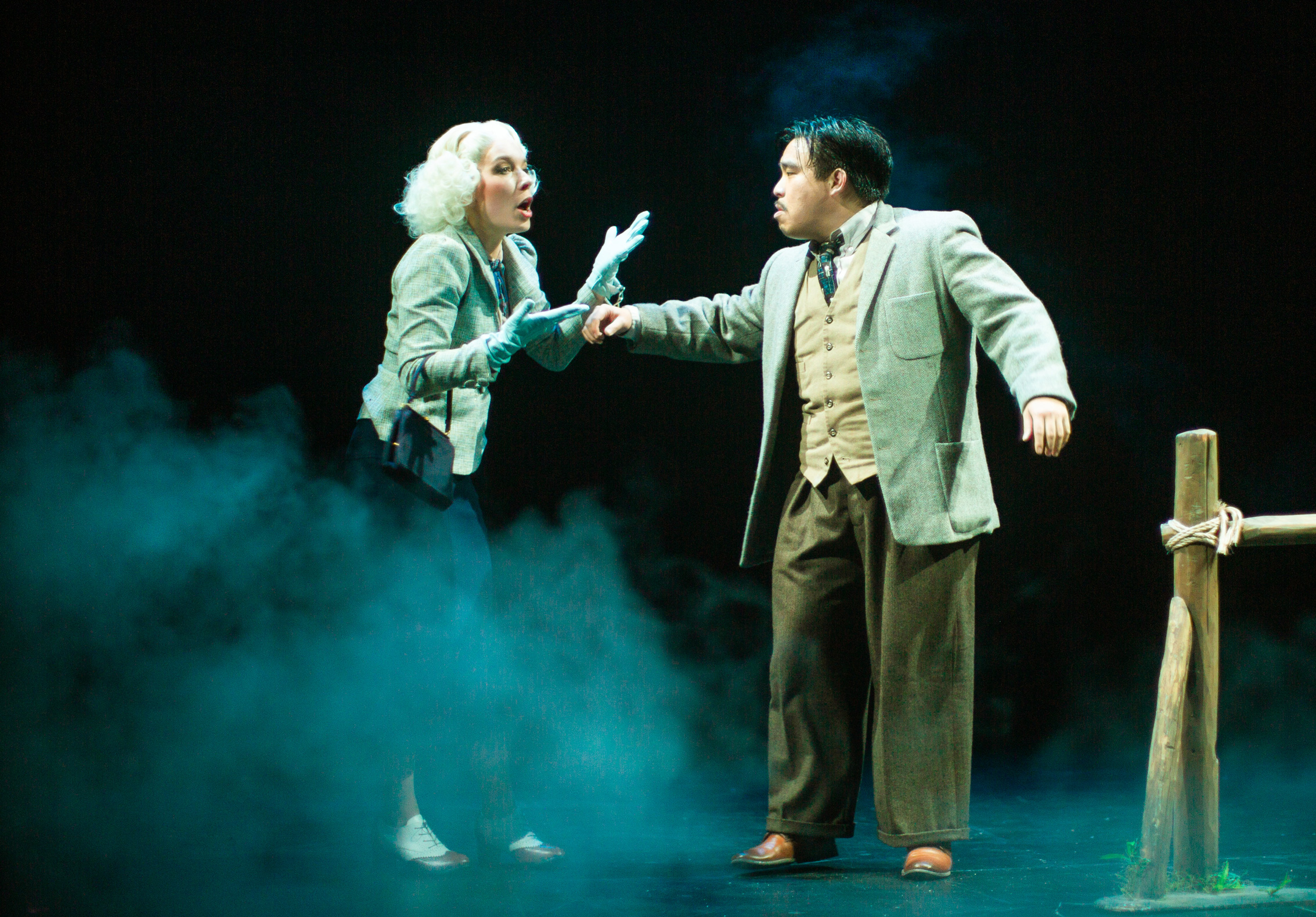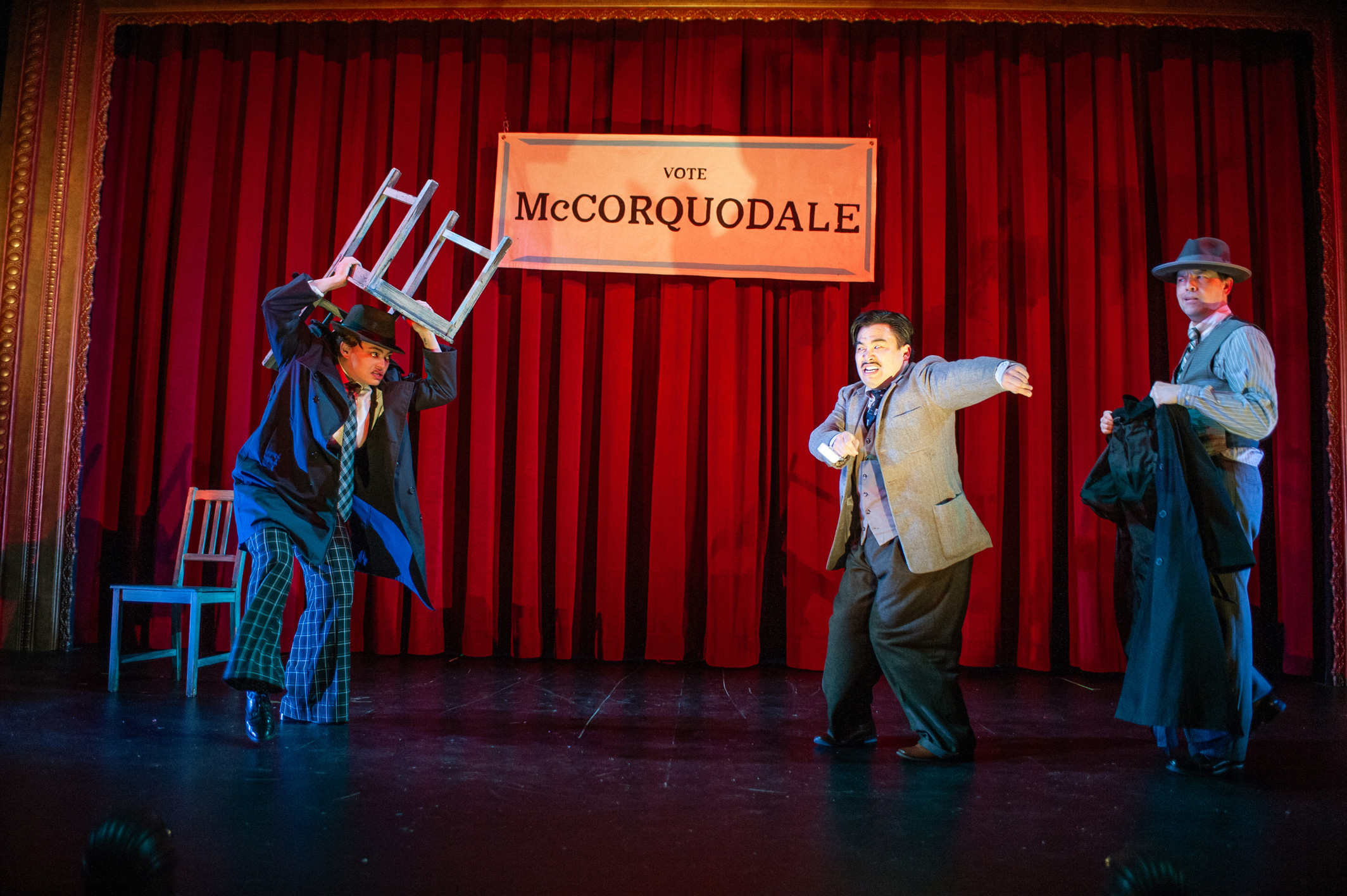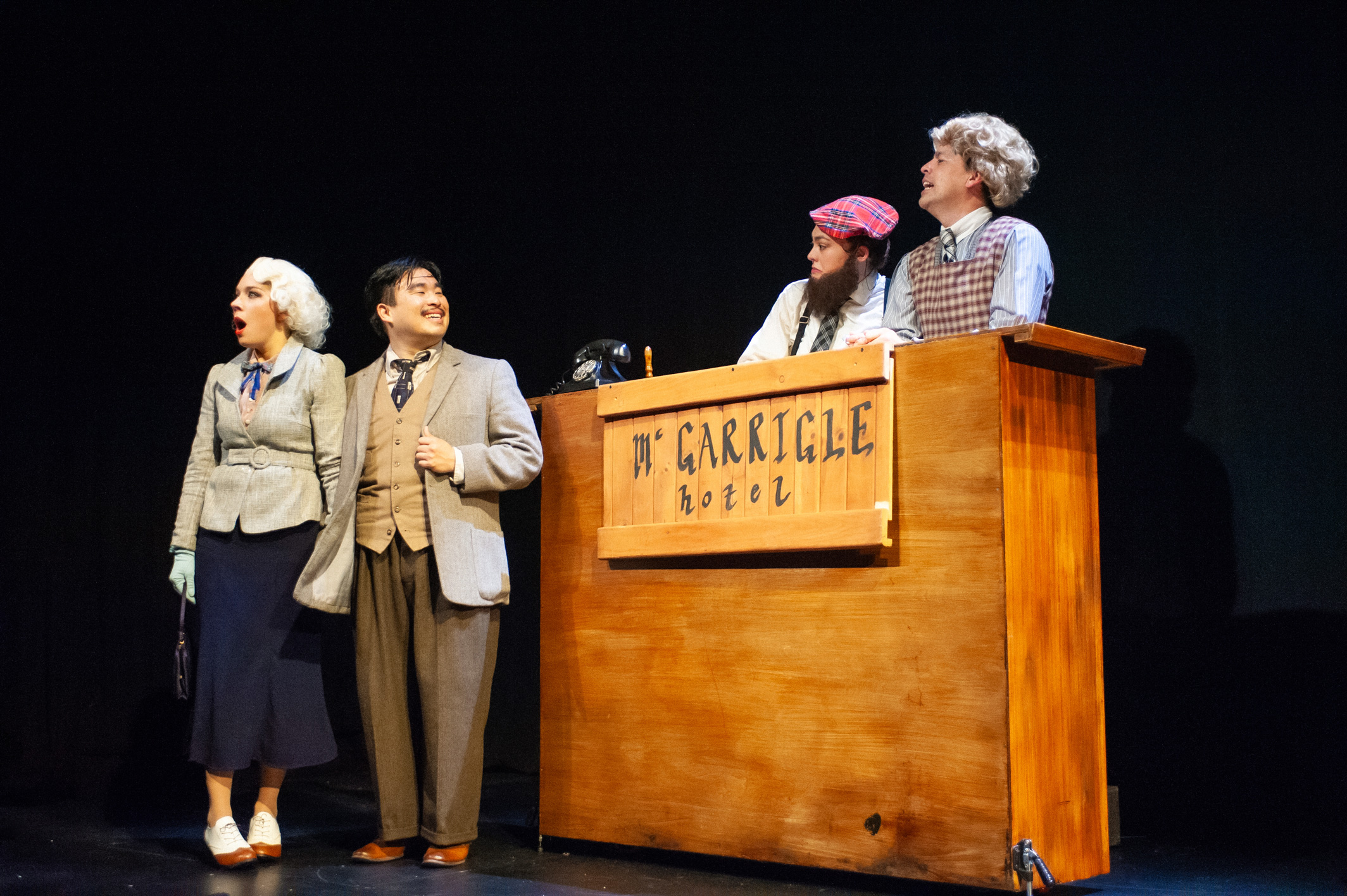 Following a mysterious murder, the rather dull Richard Hannay launches on a high-speed chase from a London music hall to Scotland’s highlands, where he must dodge devious spies, woo beautiful bombshells, and attempt to reveal secrets of The 39 Steps, an international spy ring. With inventive stagecraft and masterful performances, four nimble actors play more than 100 characters in this riotous spoof that is equal parts slapstick comedy and film noir thriller.