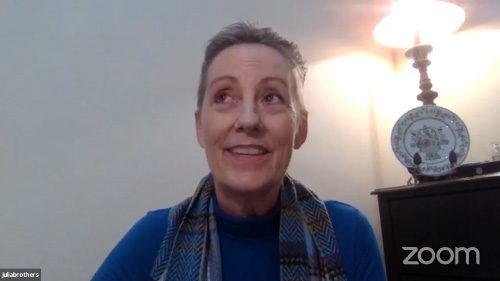 The evening’s final guest, Julia Brothers, is a warrior through and through. She shared stories of her own personal struggle with the coronavirus, and uplifted us with her words of courage and passion. For a moment it really felt as though we were all in one room together.