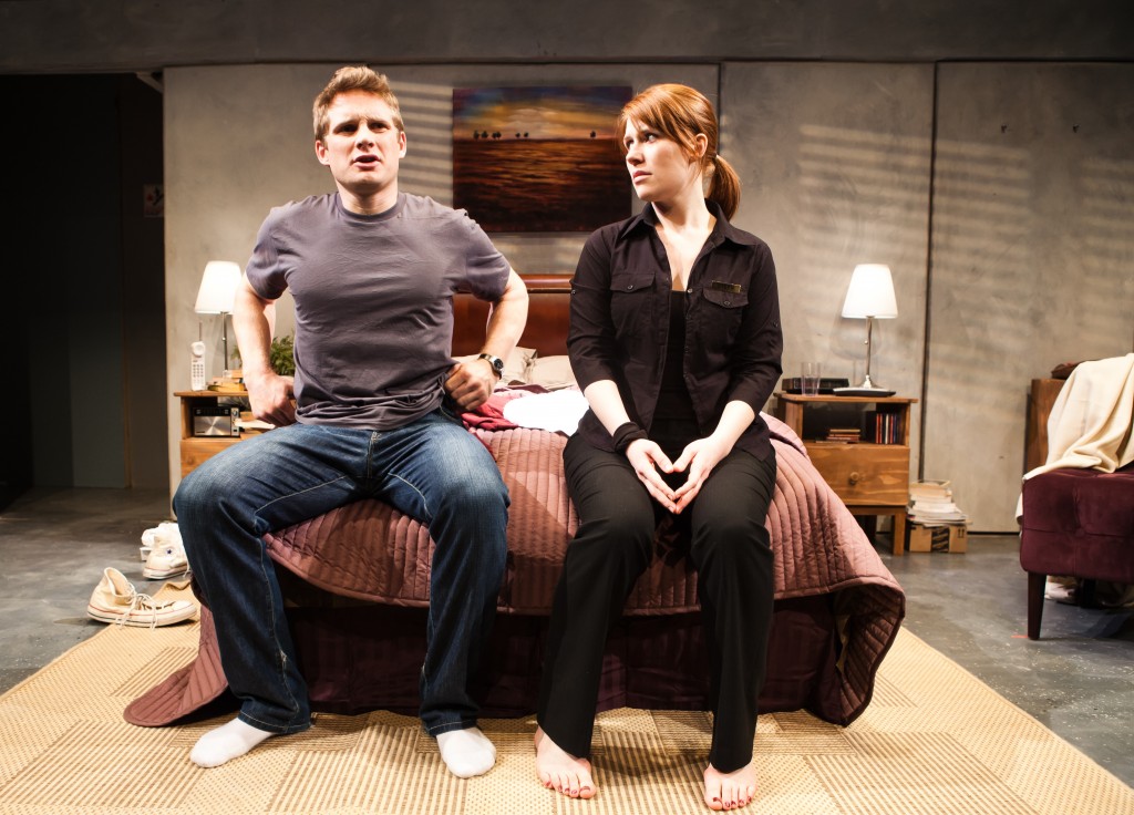 Live in couple: Greg (Craig Marker*) and Steph(Lauren English) fight when she finds out he called her ‘regular‘.