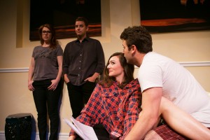 Kate and Douglas (Lauren English*, Patrick Russell*) look on as Izzy and Martin (Natalie Mitchell* and James Wagner*) flirt at Seminar.