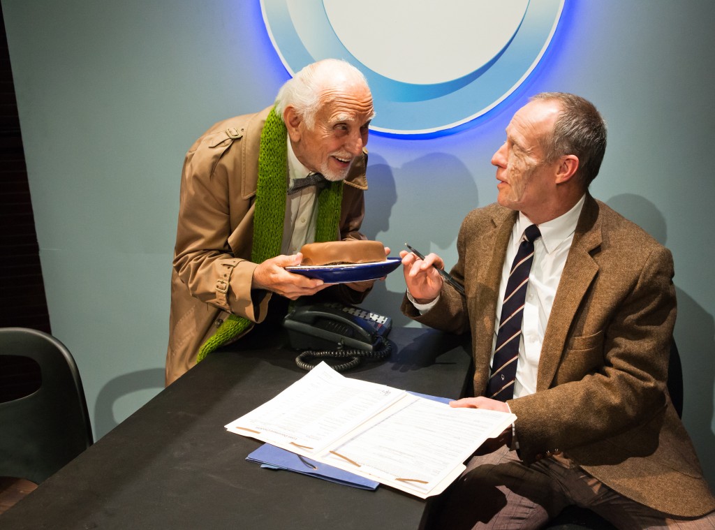 Ethan (Ray Reinhardt*) sneaks cake from wife (Gloria Weinstock*) in meeting with Borough President (Gabriel Marin*).