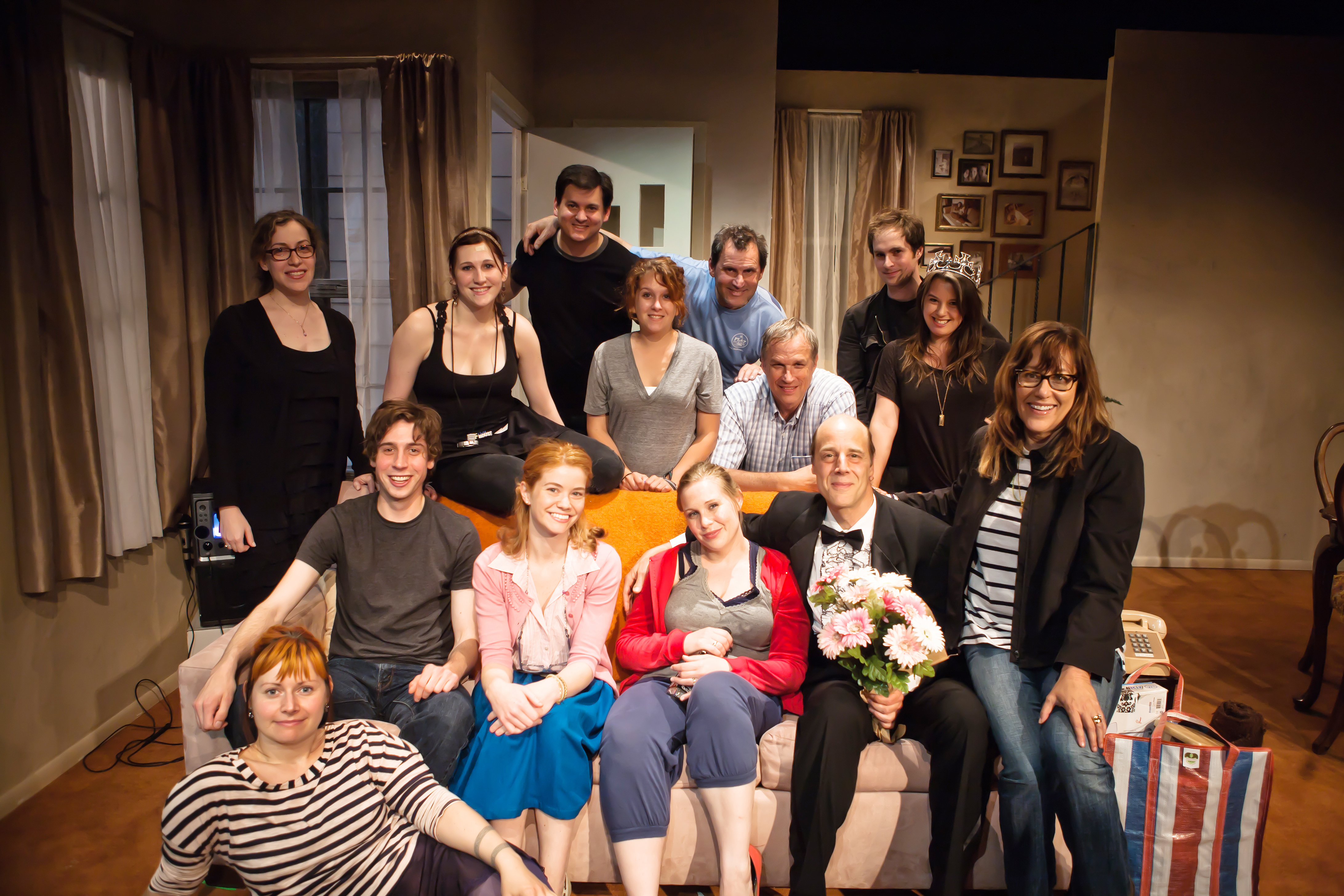 Grace (Rebecca Schweitzer*) finally gets up from the sofa! (Melissa Quine and Jeremy Kahn observe).